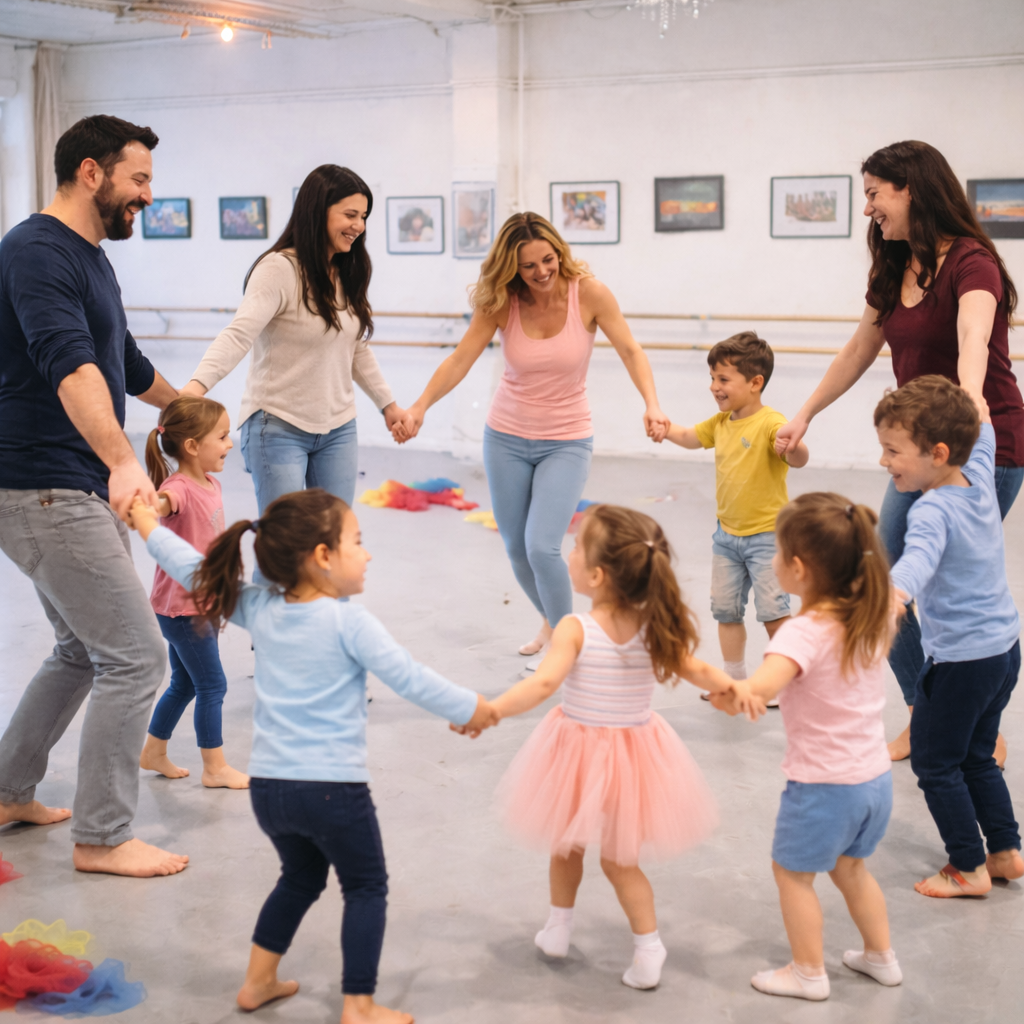In unserem Eltern-Kind-Tanzkurs entdecken Kinder von 2–6 Jahre gemeinsam mit Mama, Papa oder einer vertrauten Bezugsperson die Welt der Bewegung, Musik und des Tanzes.
